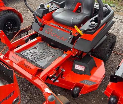 Most mowers in this price range are stamped from flimsy steel and bolted together. But not this Bad Boy. This MZ Magnum is loaded with a 2˝ x 2˝ all-steel rail frame for its backbone, a lower center of gravity and industry-leading 3/8˝ steel front forks. Plus, there's the all-new solid steel, all-welded sloped deck, the heaviest deck you can get in this class of mowers. Magnum's deck strength is the stuff of legend. Made from 3/16 inch or 7-gauge steel with reinforced edges and additional ¼” side plates, it's durable and dependable day after day. Choose between the 48” or 54” deck, both features a baffling system to maximize airflow for greater grass lift and a cleaner cut.